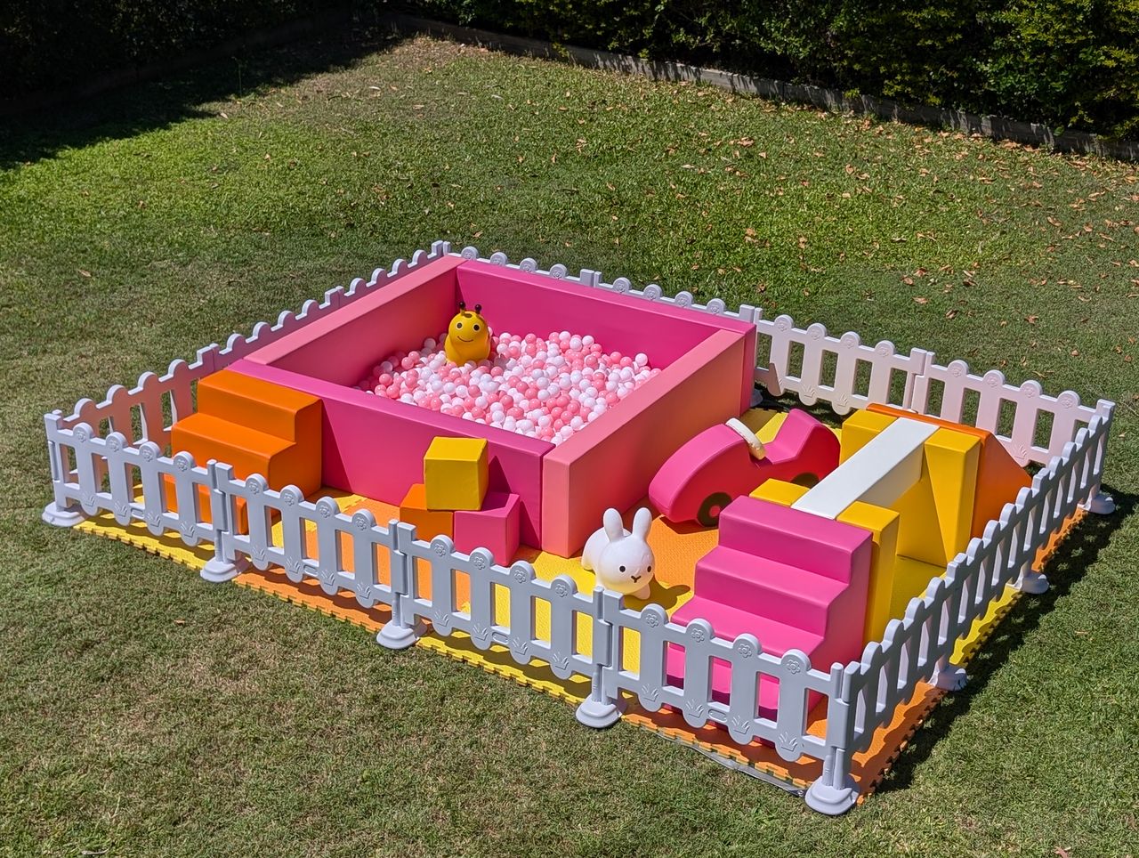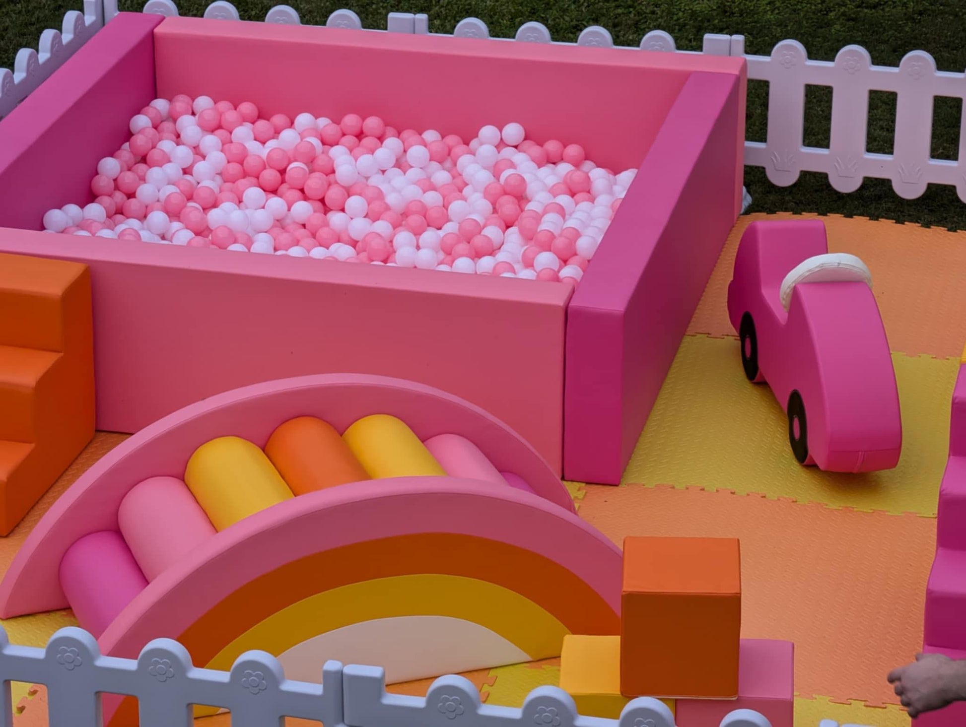 Introducing our vibrant pink, yellow, and orange soft play set! Perfect for little adventurers. We deliver, set up, sanitise and pack up when you are finished playing.
